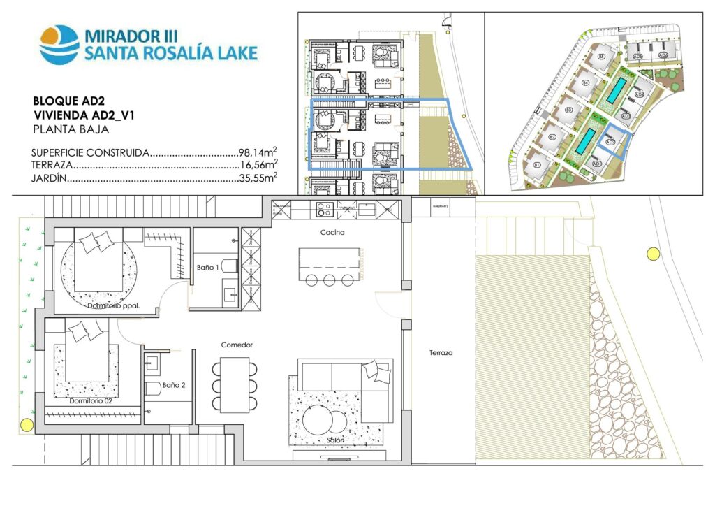 Elegant 2 bedroom, 2 bathroom Adosado Mirador bungalows, each featuring a private garden or rooftop solarium. These homes combine modern design, comfort and premium finishes for a truly refined living experience.