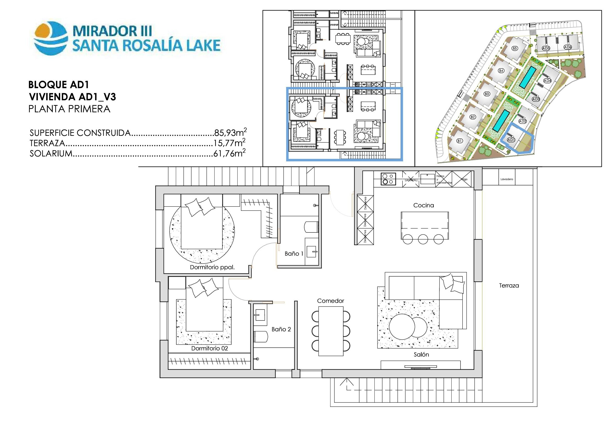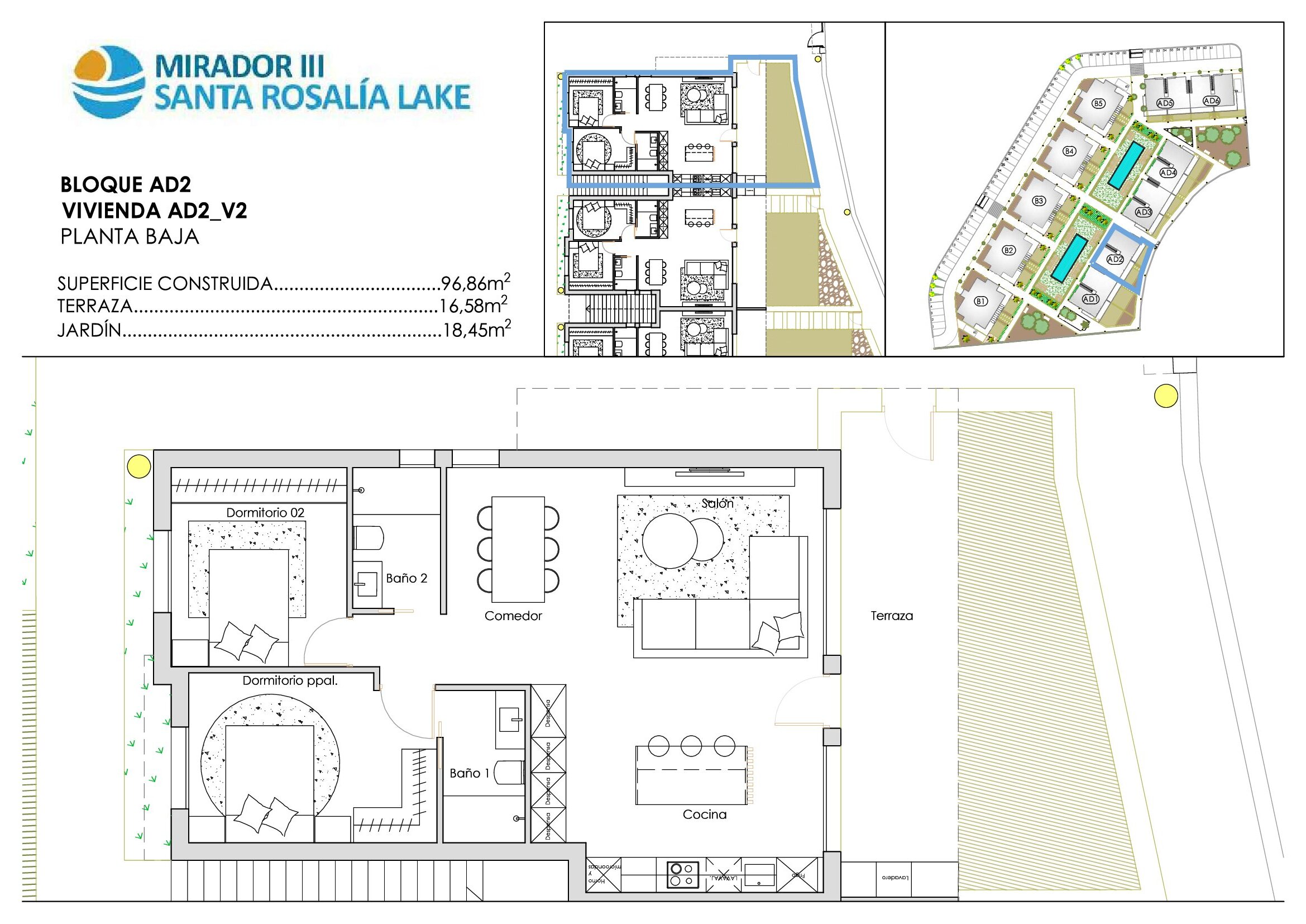 Elegant 2 bedroom, 2 bathroom Adosado Mirador bungalows, each featuring a private garden or rooftop solarium. These homes combine modern design, comfort and premium finishes for a truly refined living experience.
