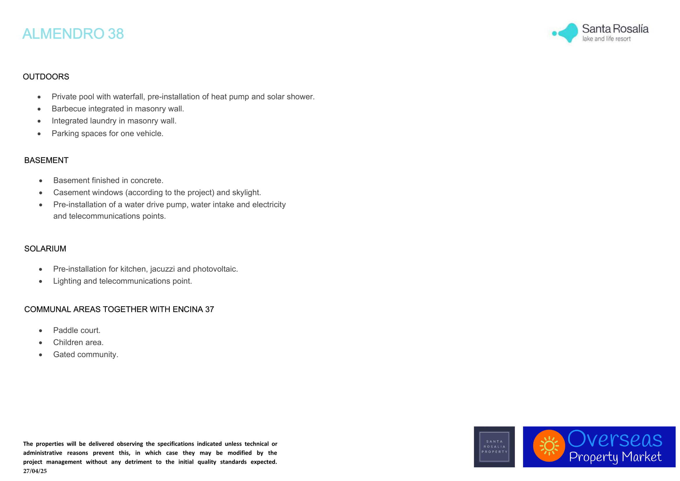- Access to an exclusive paddle court shared only with the 9 Almendro Villas and Encina 37 Apartments