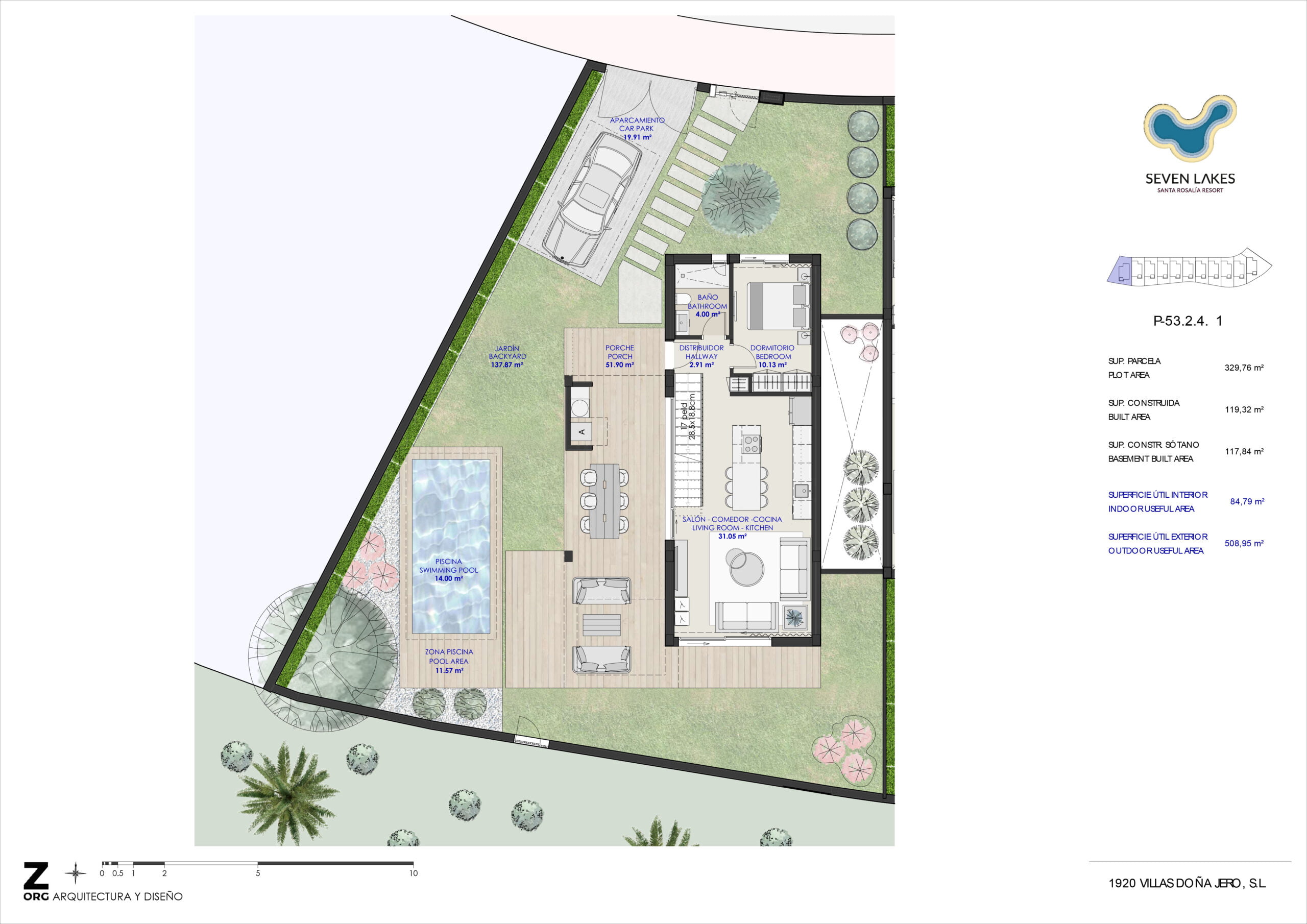 Seven Lakes Villas are south facing with 3 bedrooms, 3 bathrooms + private pool and a very useful 117m² basement and private parking.