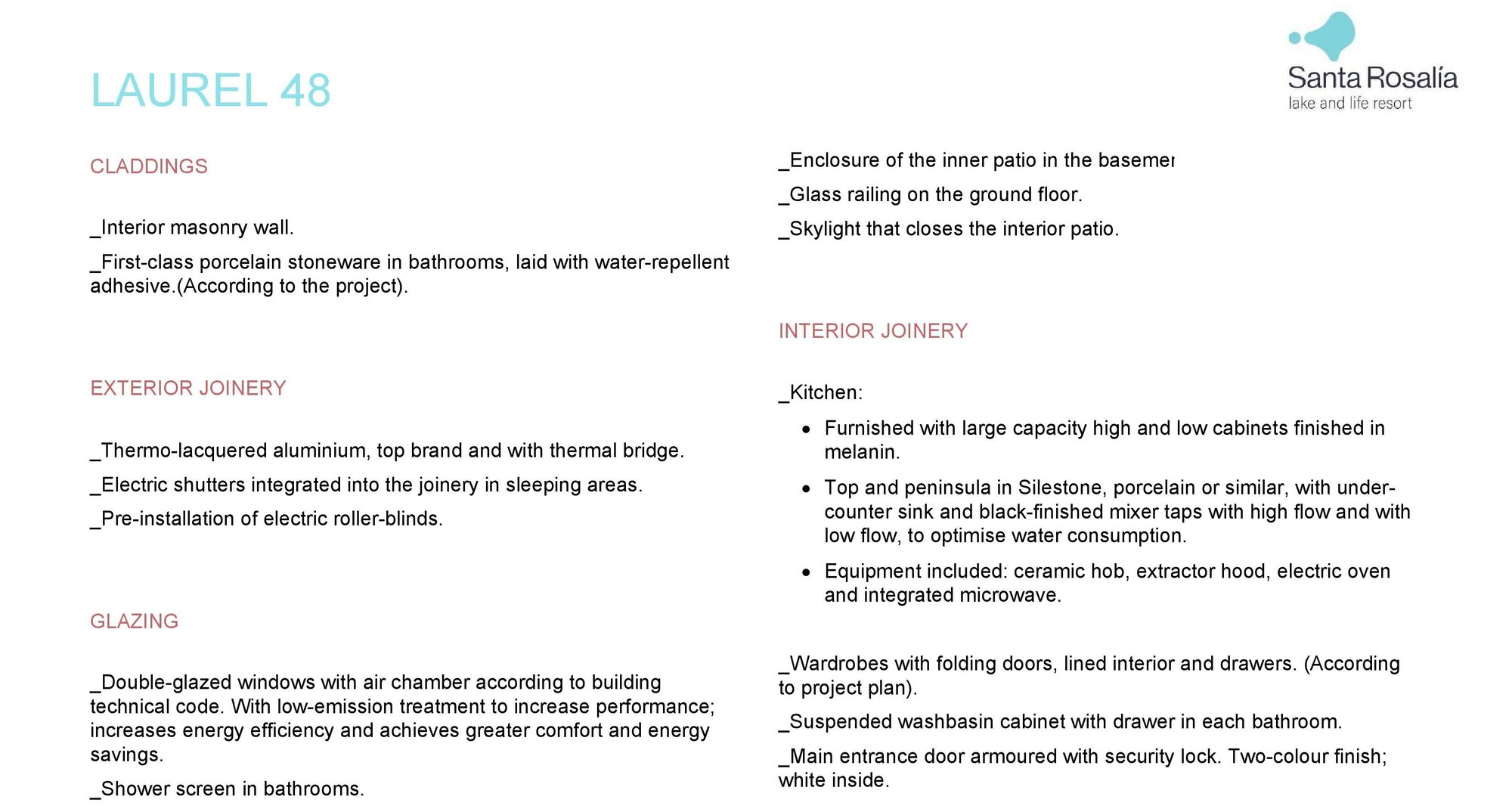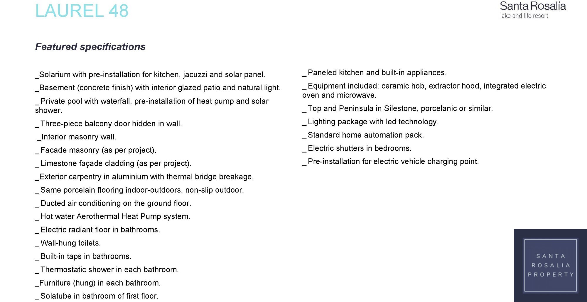 Reservation €6,000 fee to secure Laurel 48 Villa. Completion October / November 2026