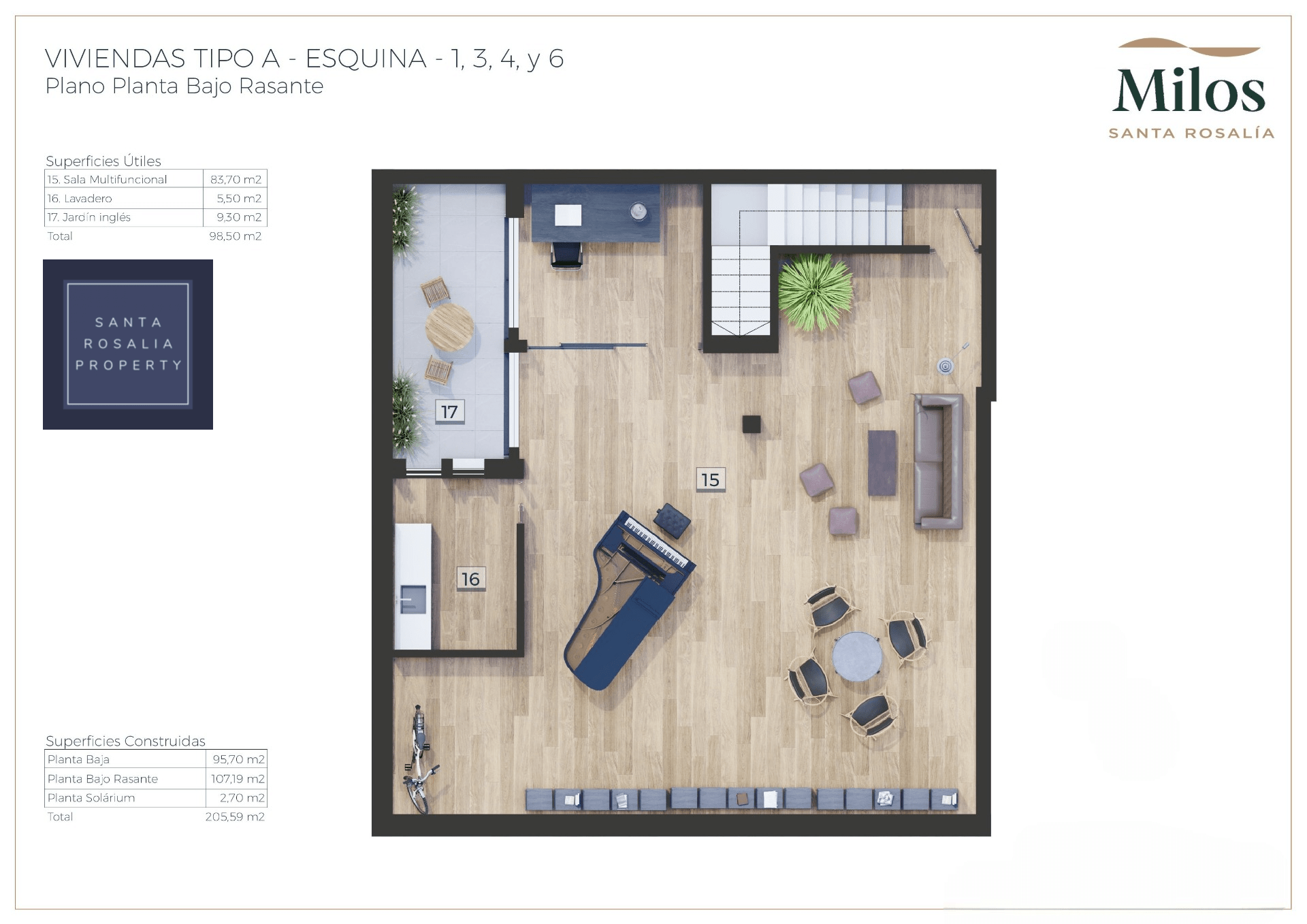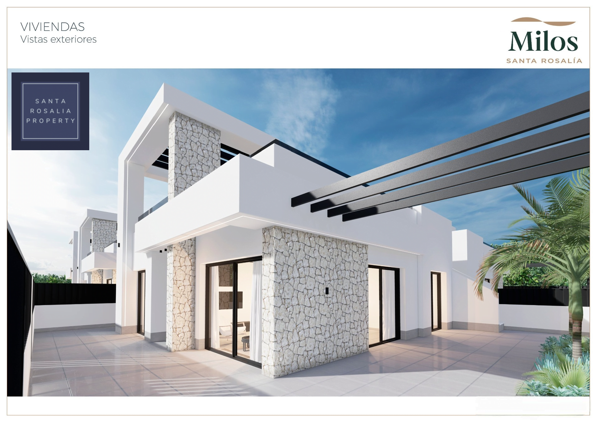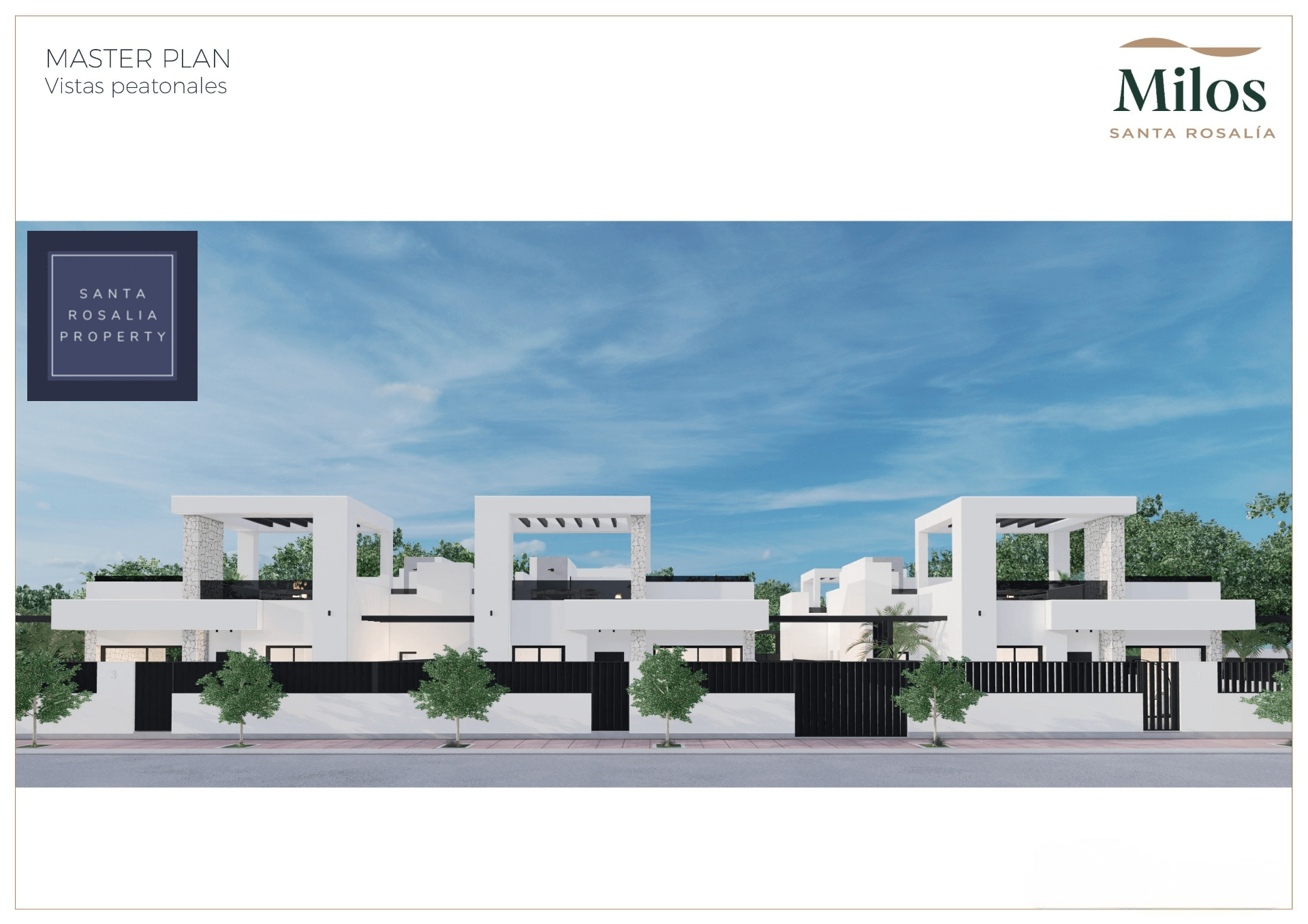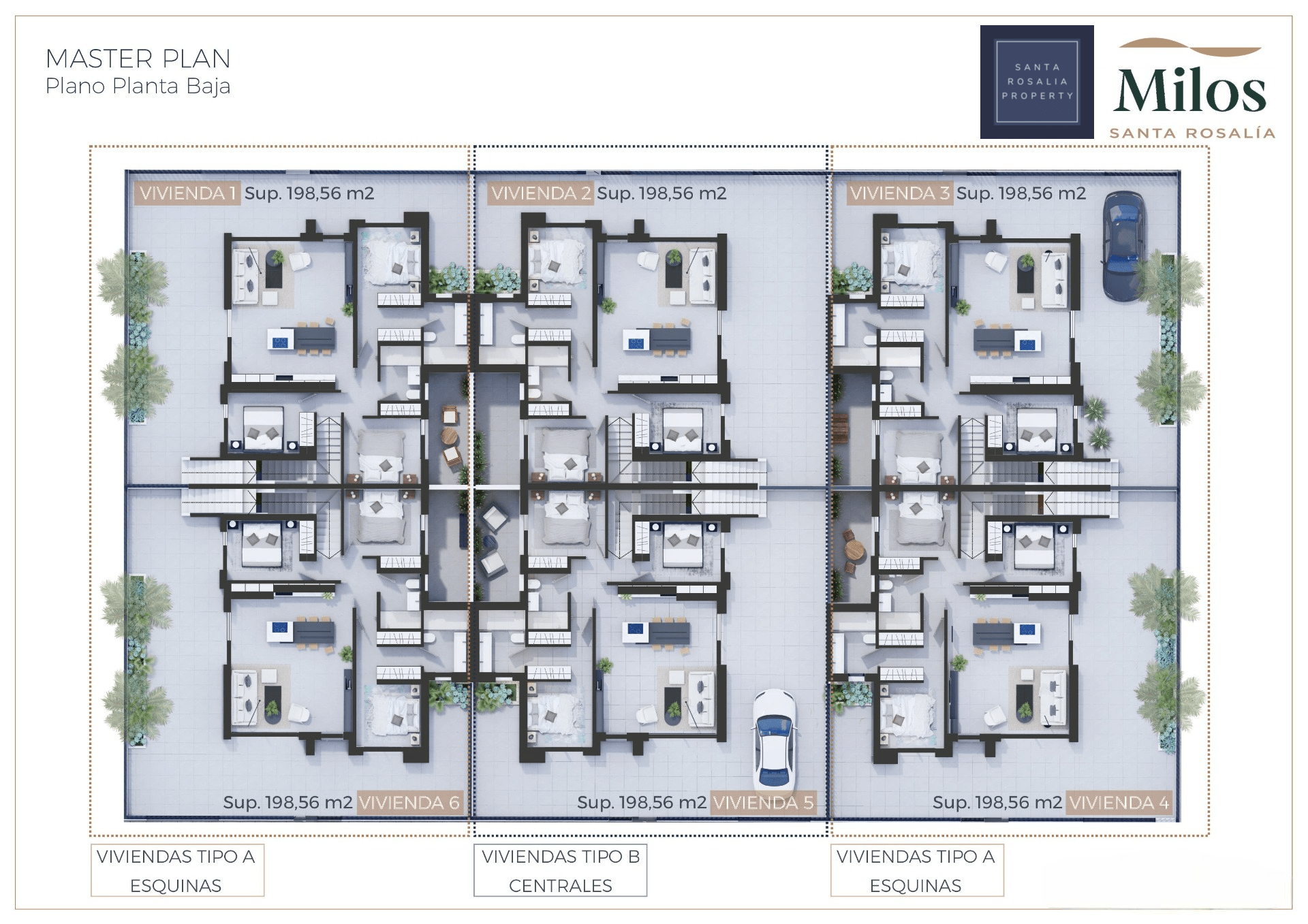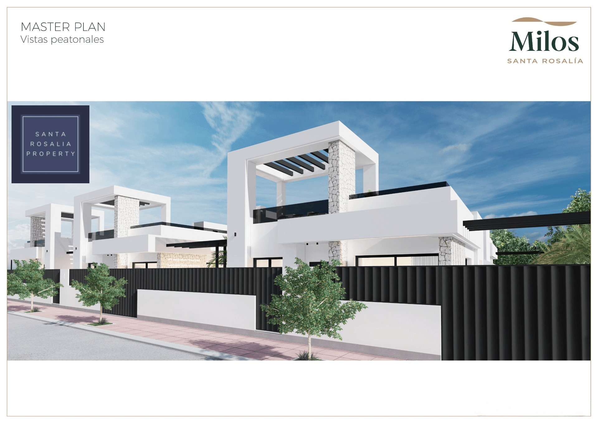 Located in a great central position close to the lagoon. 6 Milos villas with 3 bedrooms, 2 bathrooms all on one level + large impressive multi purpose fully finished basement room of around 125.00m². Iconic roof solarium that also includes a fantastic swimming pool.