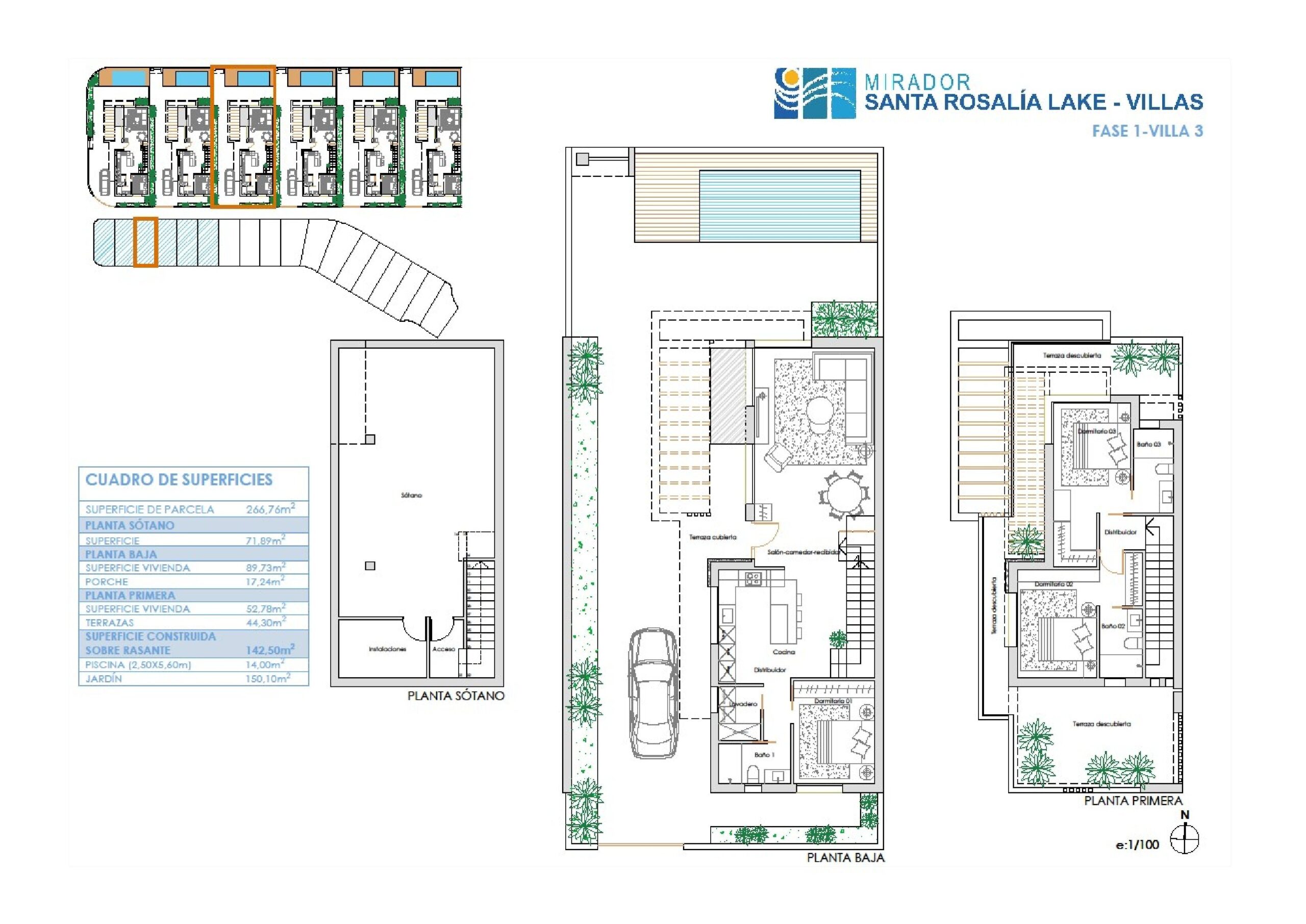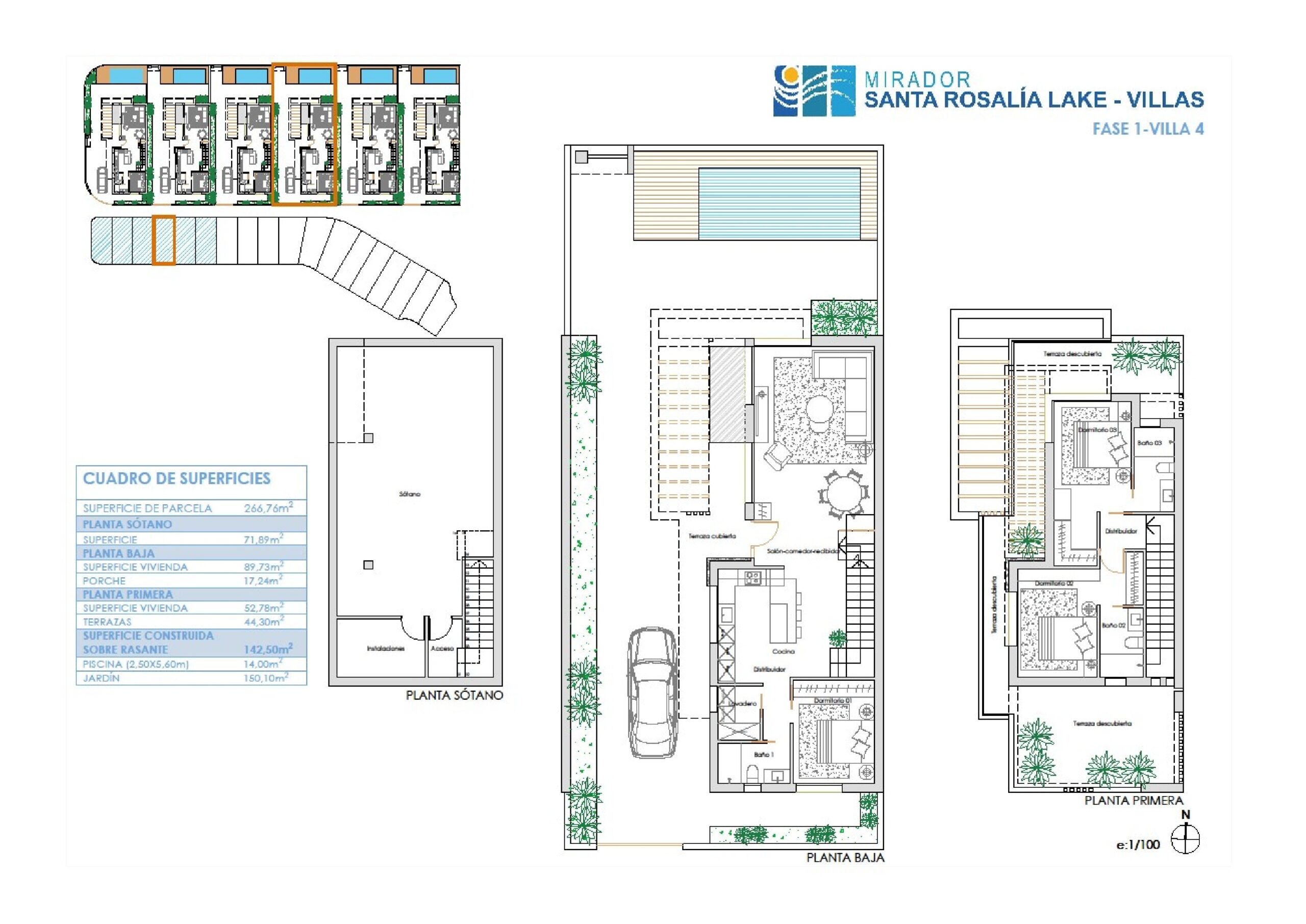 | Villa | Bed | Bath | Plot m² | Villa m² | Basement m² | Terrace Ground m² | Garden m² | Terrace First Floor m² | Price € +iva |