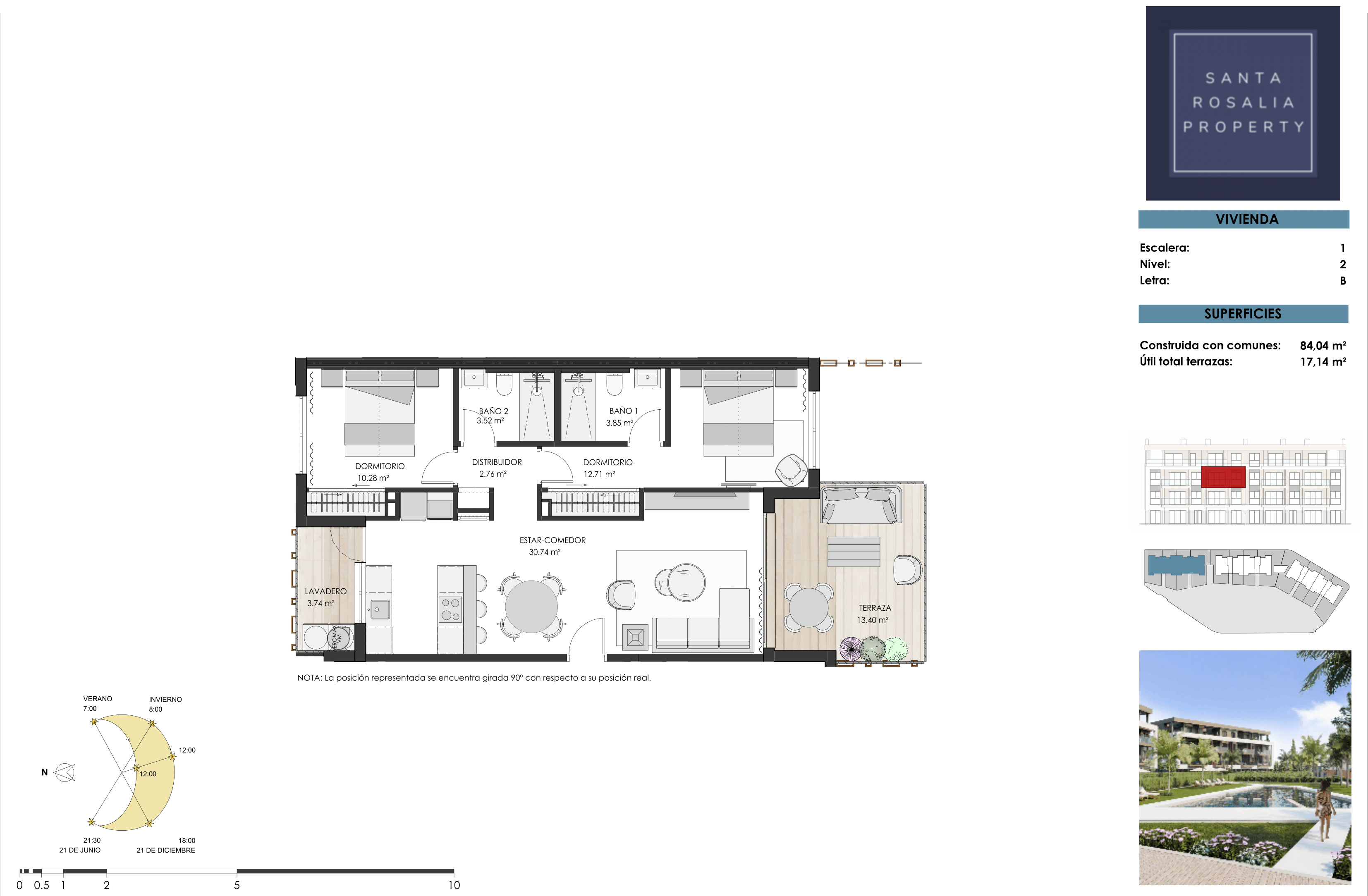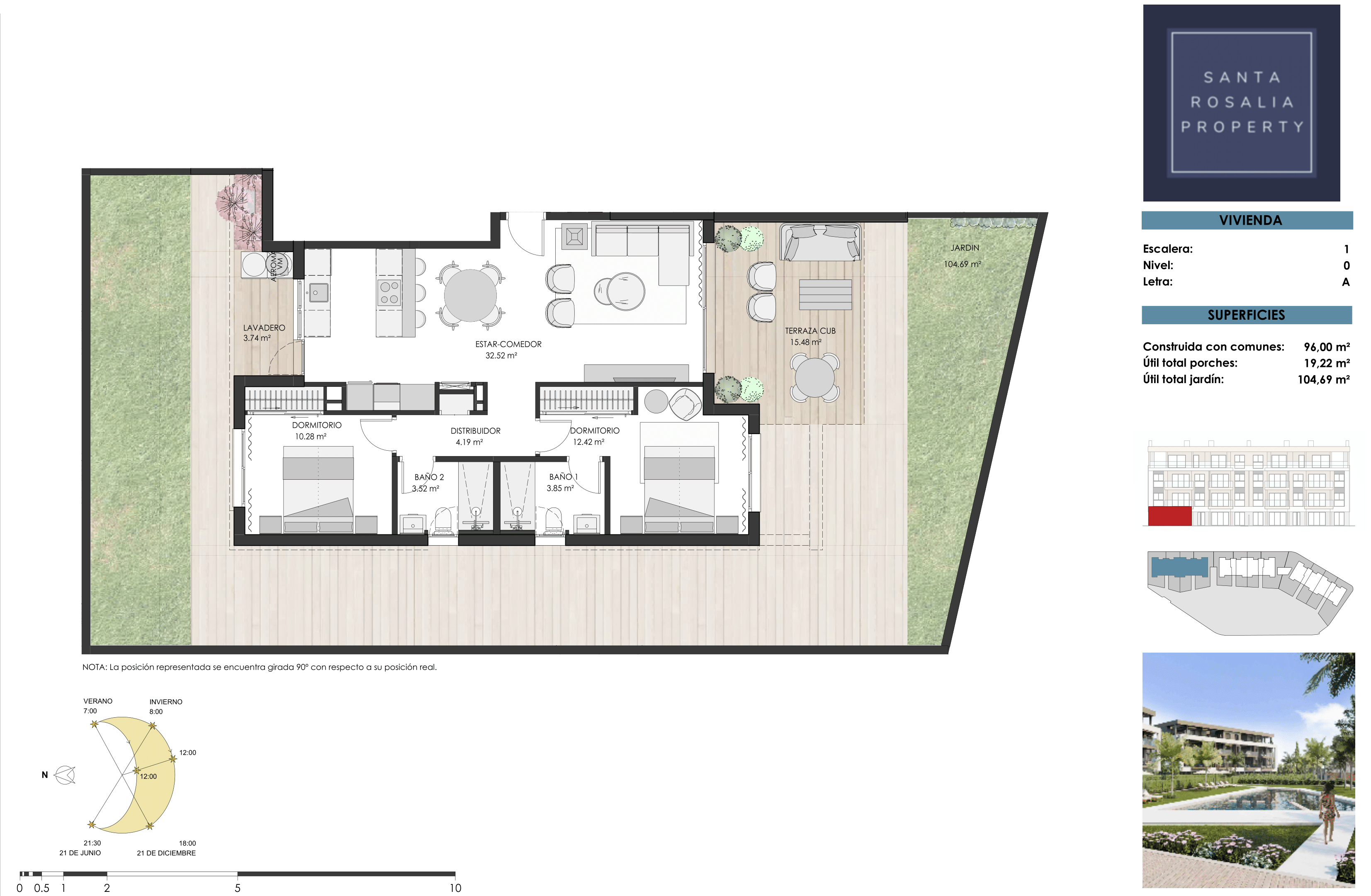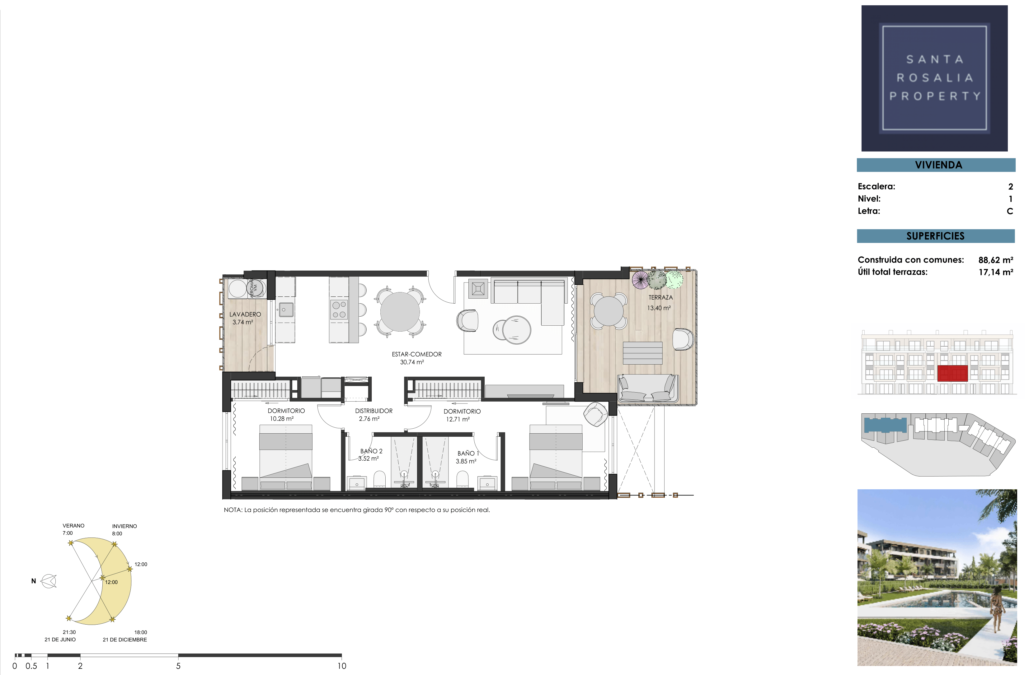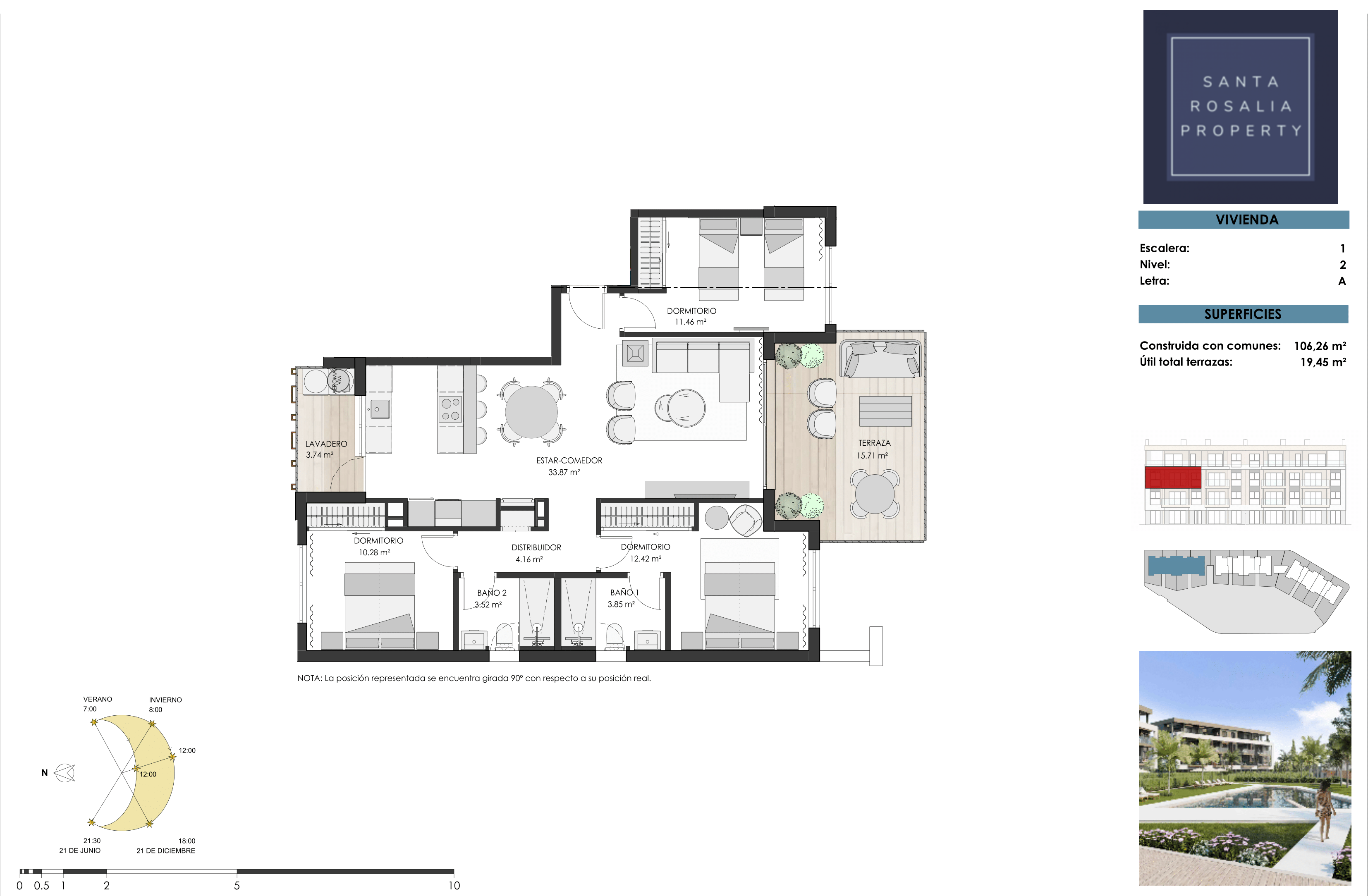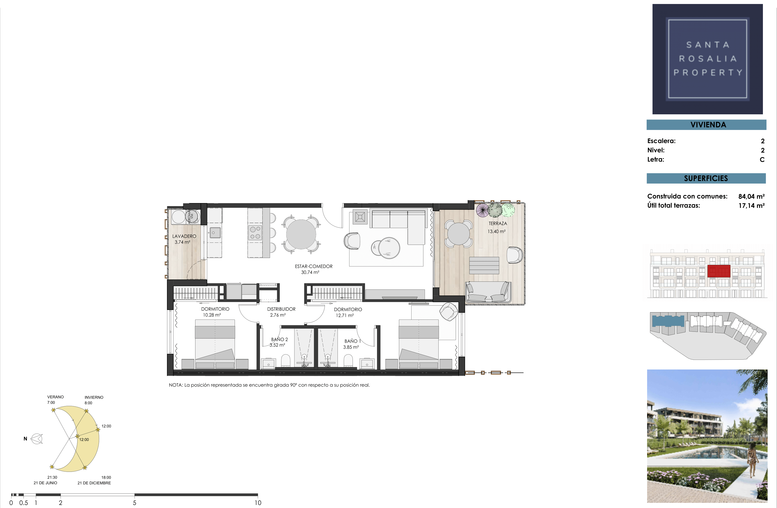 The apartments boast panoramic views of the communal areas and pool, with select units also enjoying picturesque vistas of the surrounding countryside and the Santa Rosalía Lake.