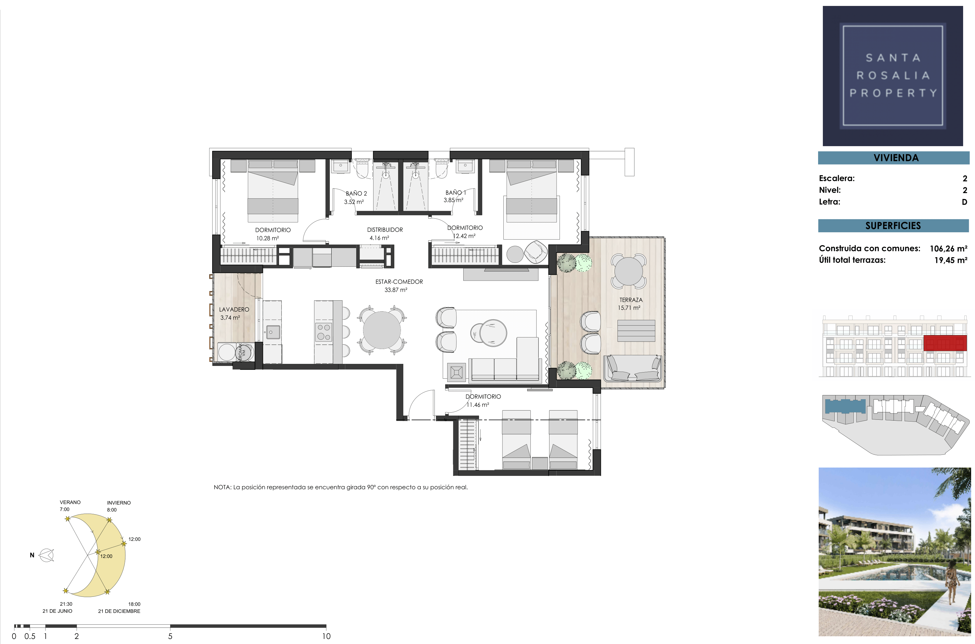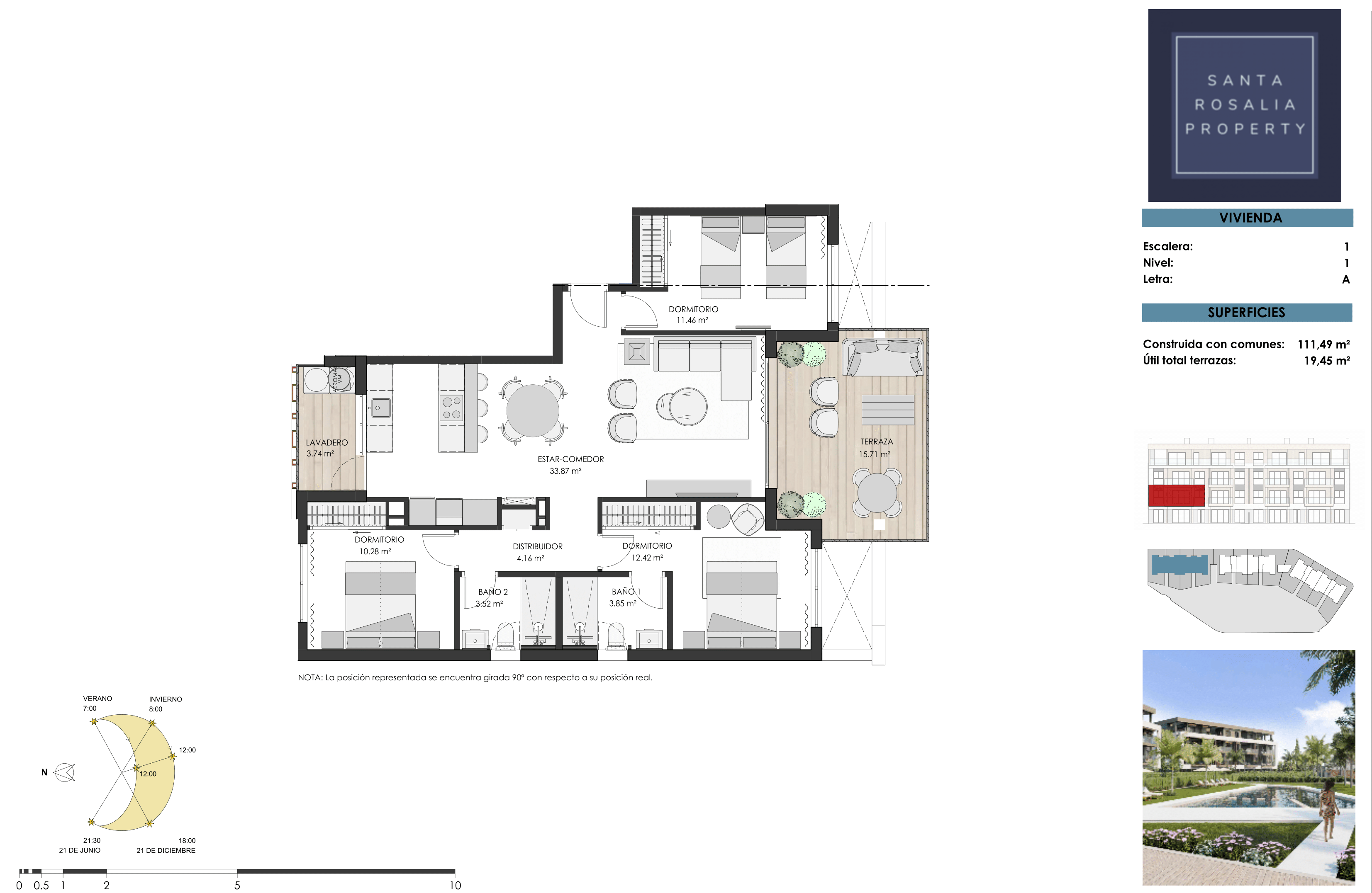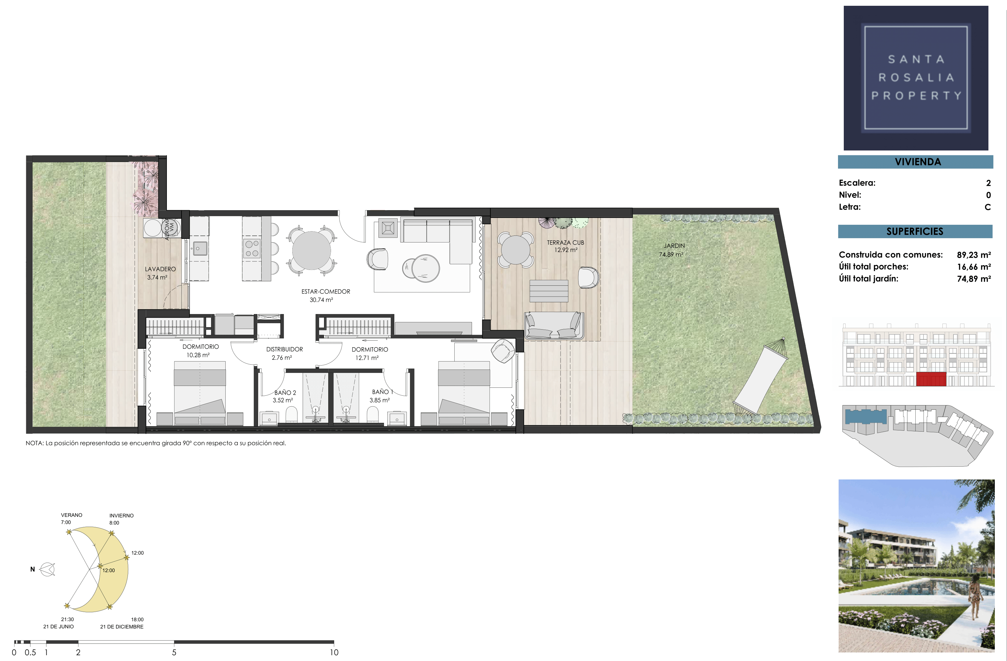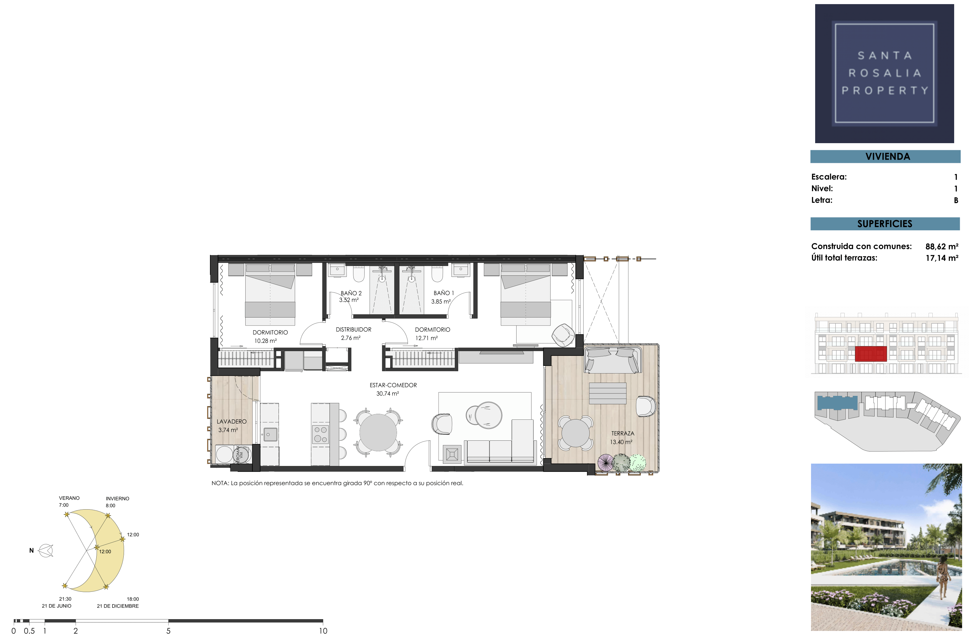 The apartments boast panoramic views of the communal areas and pool, with select units also enjoying picturesque vistas of the surrounding countryside and the Santa Rosalía Lake.