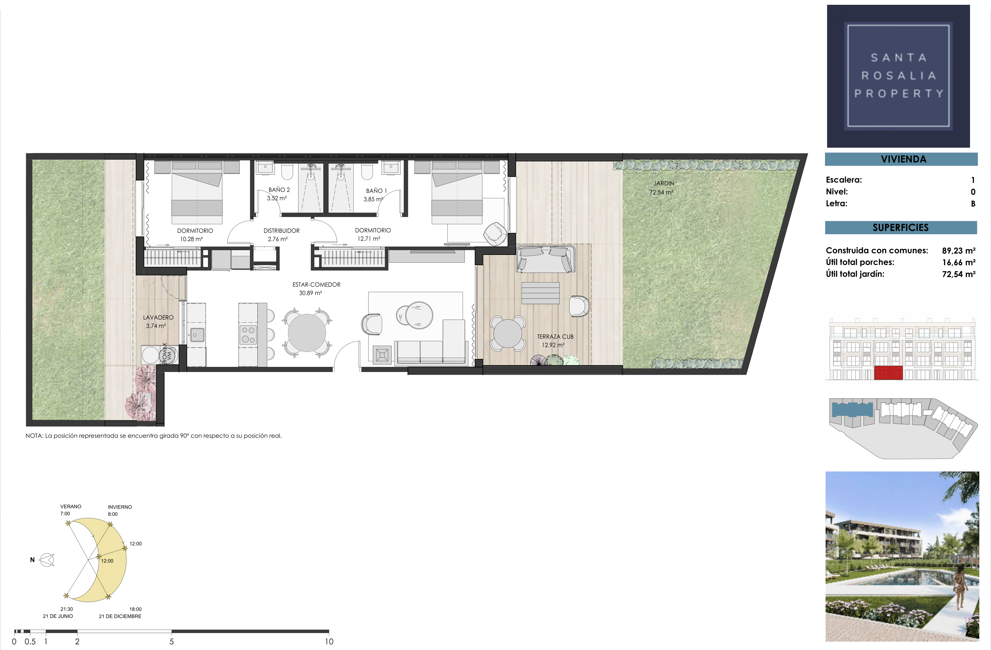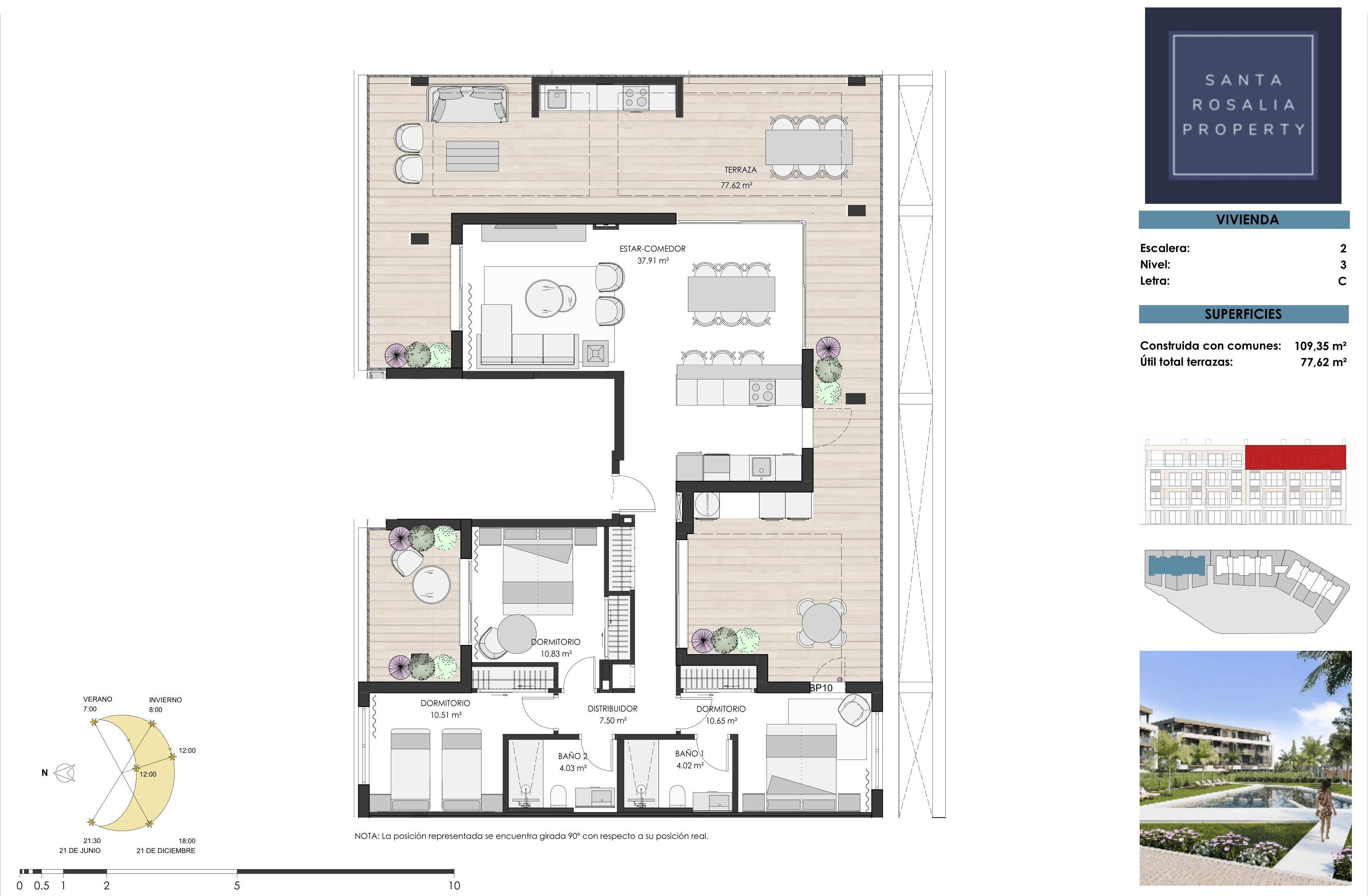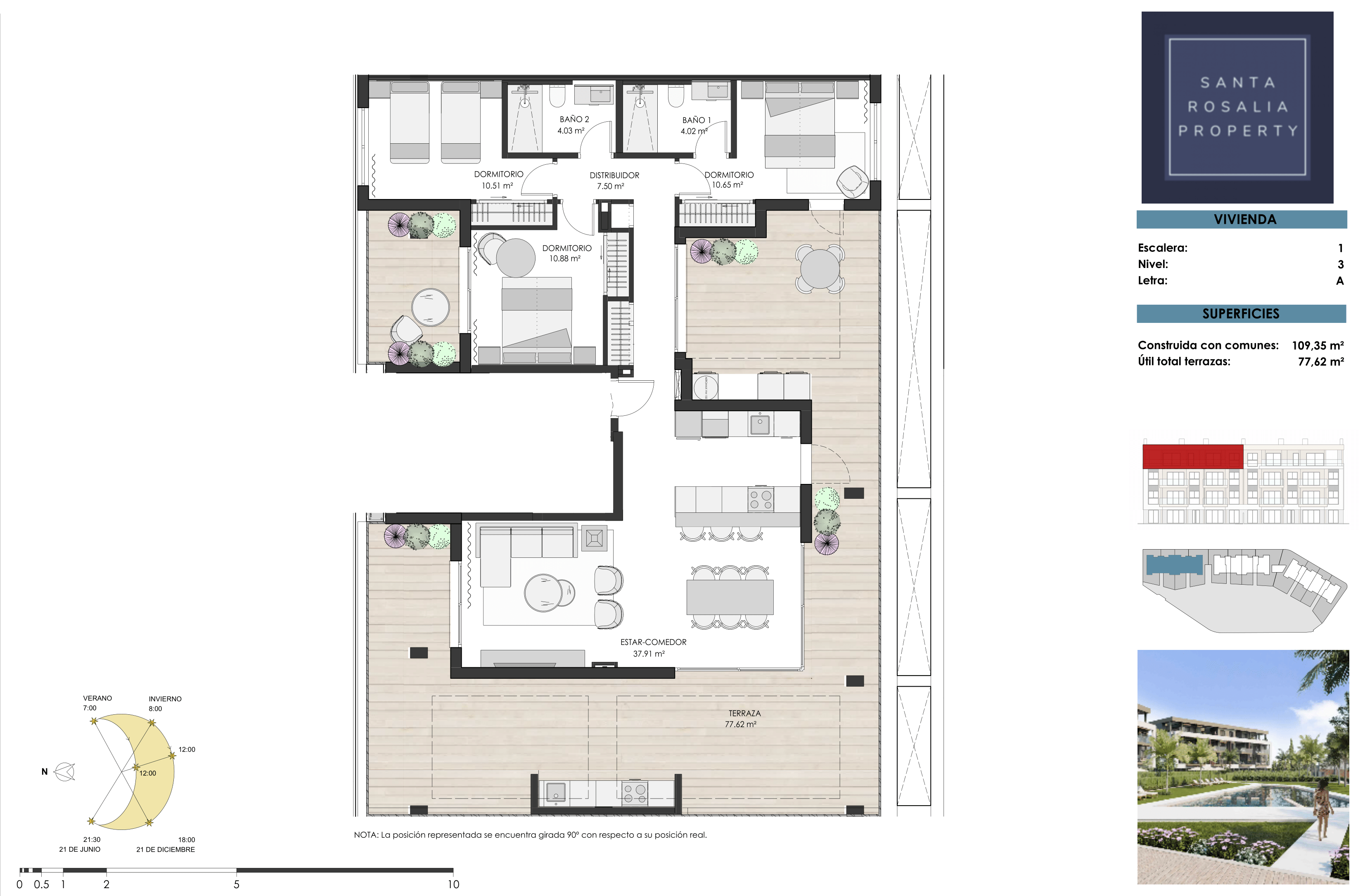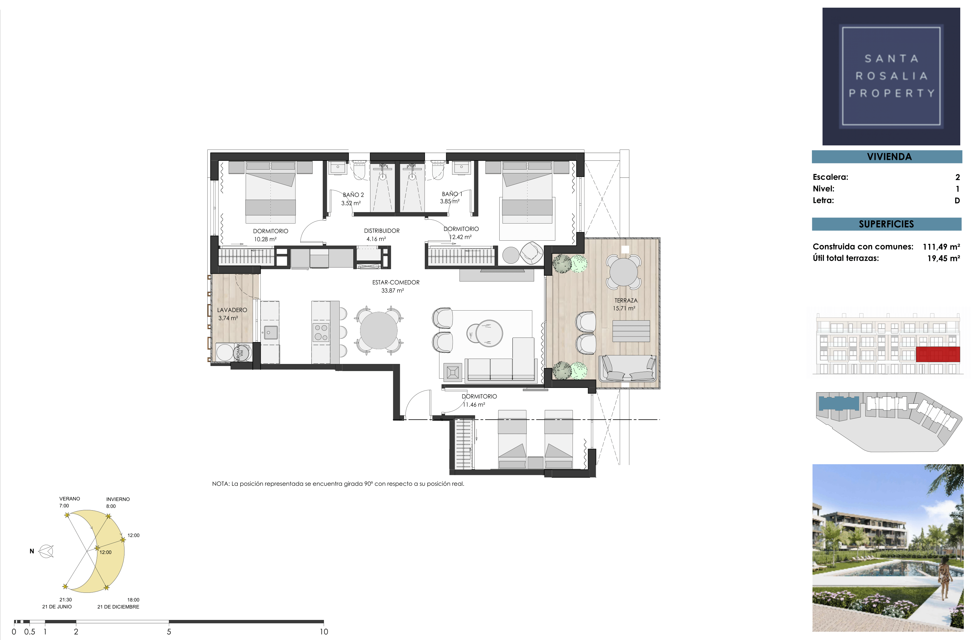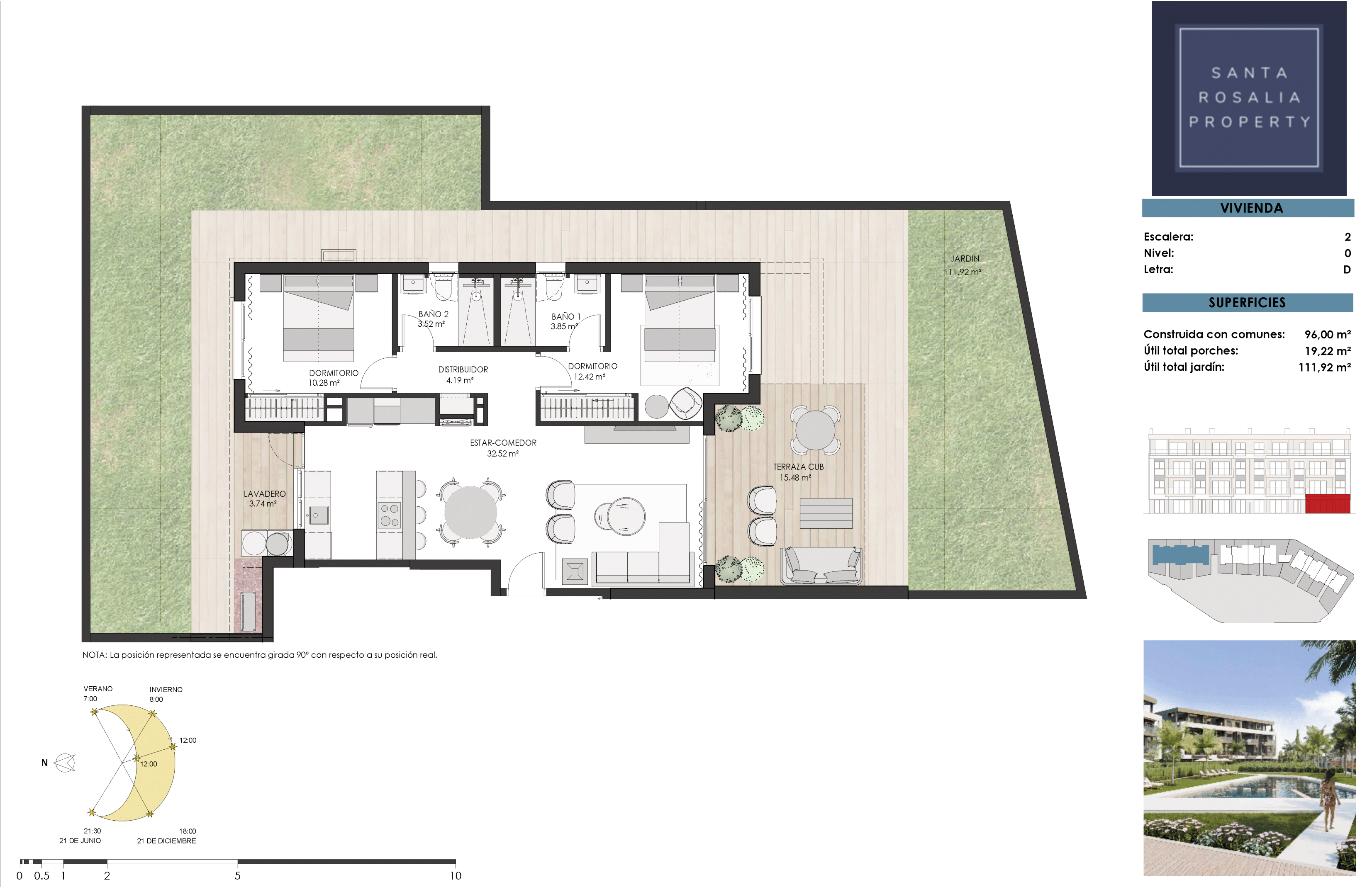 The apartments boast panoramic views of the communal areas and pool, with select units also enjoying picturesque vistas of the surrounding countryside and the Santa Rosalía Lake.