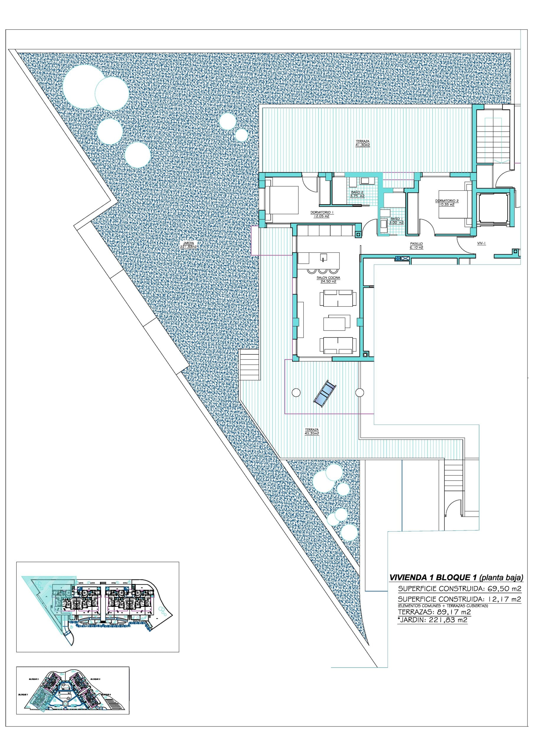 | No | Floor | Beds | Bath | Build m² | Terrace m² | Solarium m² | Garden m² | Price € +iva |