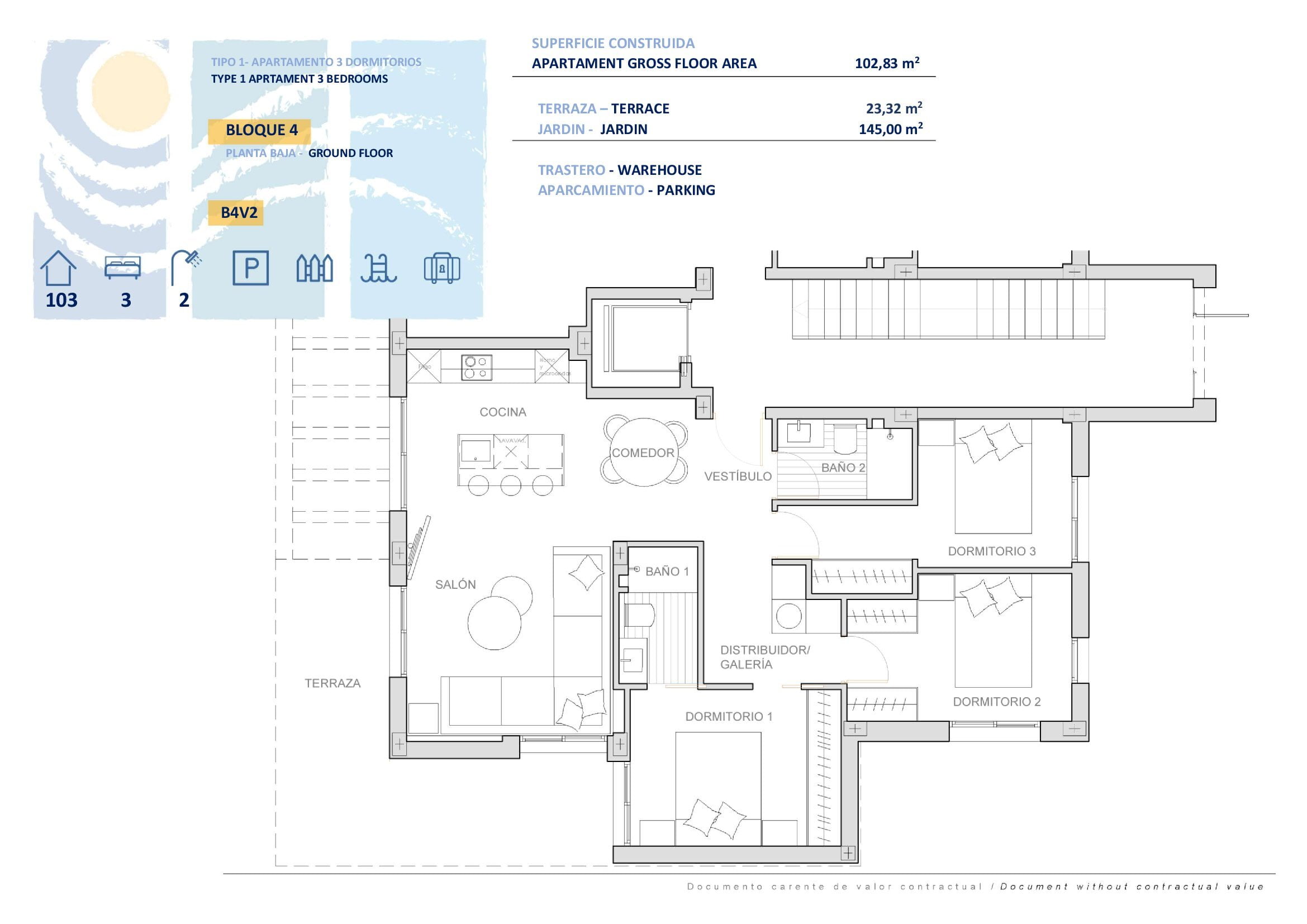 | B11V1 ground floor | 3 | 2 | 102.83 | 23.32 | 110.00 | Basement | Basement | 369,900 |